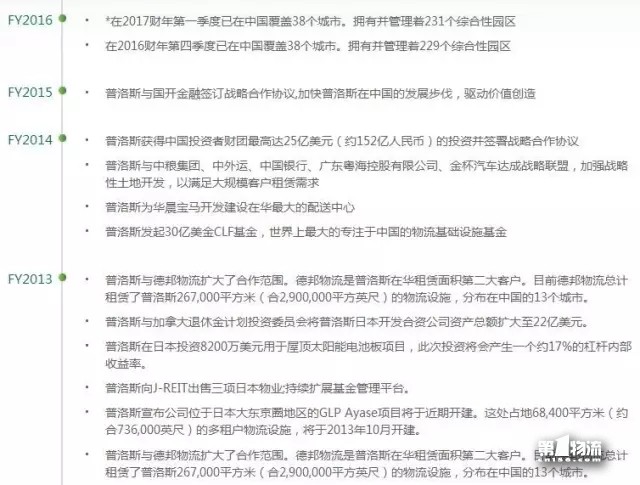 普洛斯致力于為全球最具活力的制造商、零售商和第三方物流公司不斷提高供應(yīng)鏈效率,達(dá)成戰(zhàn)略拓展目標(biāo);通過全面的開發(fā)、運營、基金管理和金融服務(wù),促進(jìn)領(lǐng)先的物流生態(tài)圈發(fā)展。其主要發(fā)展歷程及合作項目如下: