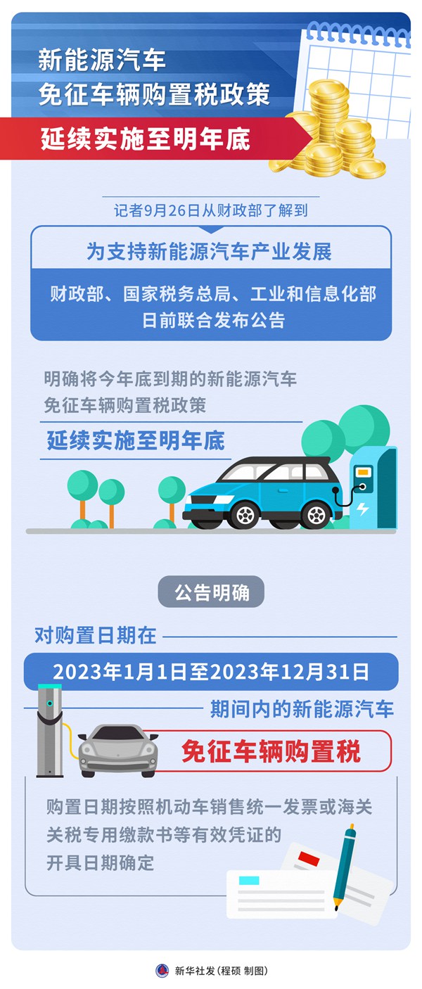 新能源汽車(chē)免征車(chē)輛購(gòu)置稅政策延續(xù)實(shí)施至明年底